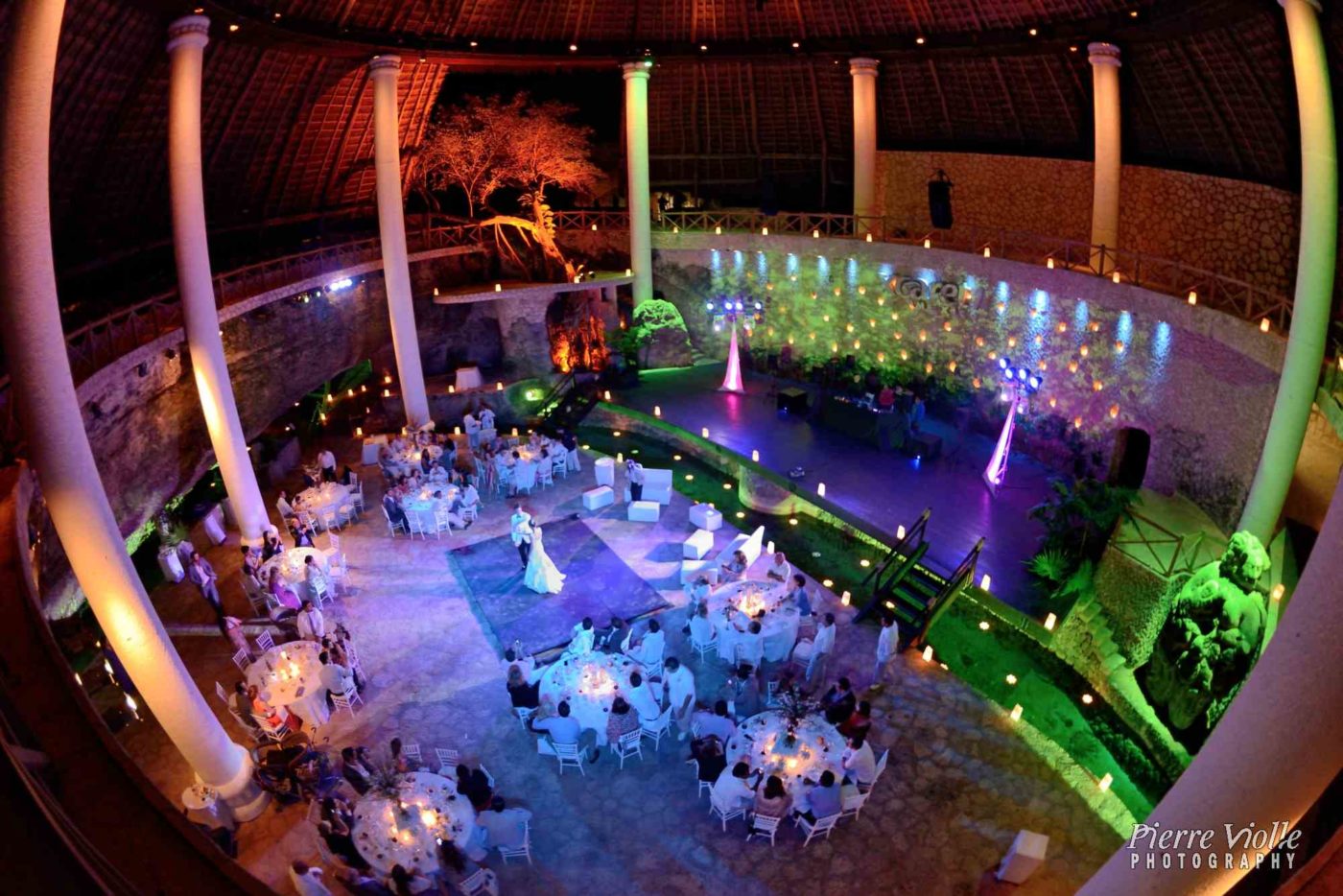 Christina et David – Mariage catholique à Xcaret dans la chapelle Saint François d’assis Ensuite ils ont reçu une bénédiction du shaman maya avant la réception à « la Isla »